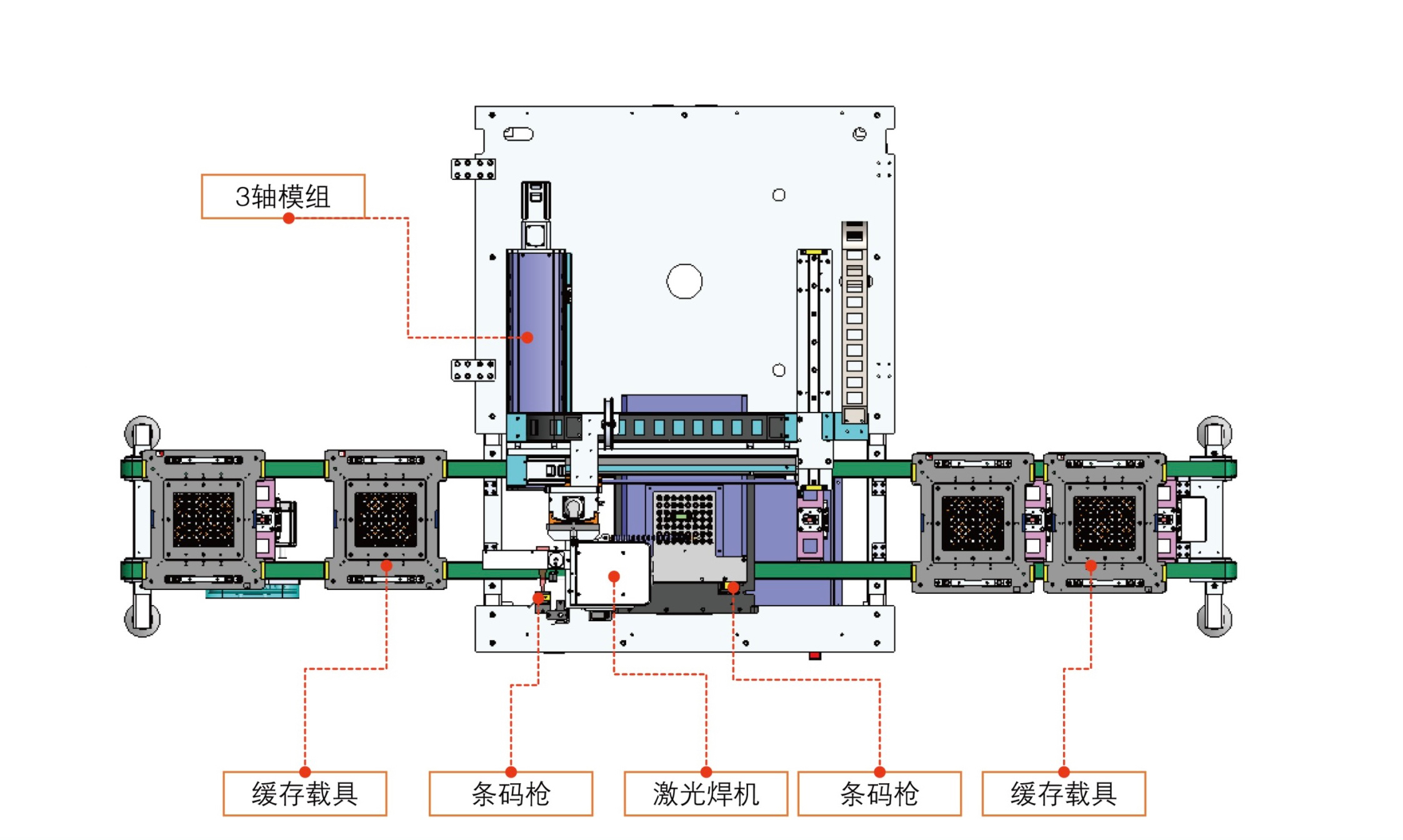 設備功能:●正極激光焊接設備特點:●配套輸送線體左右各留2個載具位做緩存位;●激光模組位3軸可移動,產品不同可適當調節;●CCD鏡頭及